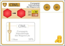 Die Aktiengesellschaft „Compagnie Internationale des Wagons-Lits“ (CIWL) ist zusätzlich im Spiel. Von ihr gibt es eine 40%-Direktorsaktie und drei 20%-Aktien. Sie liefert einen Bonus, wenn eine Kleinbahn mit einer Lok von einer roten Fernverbindung zu einer anderen fährt.